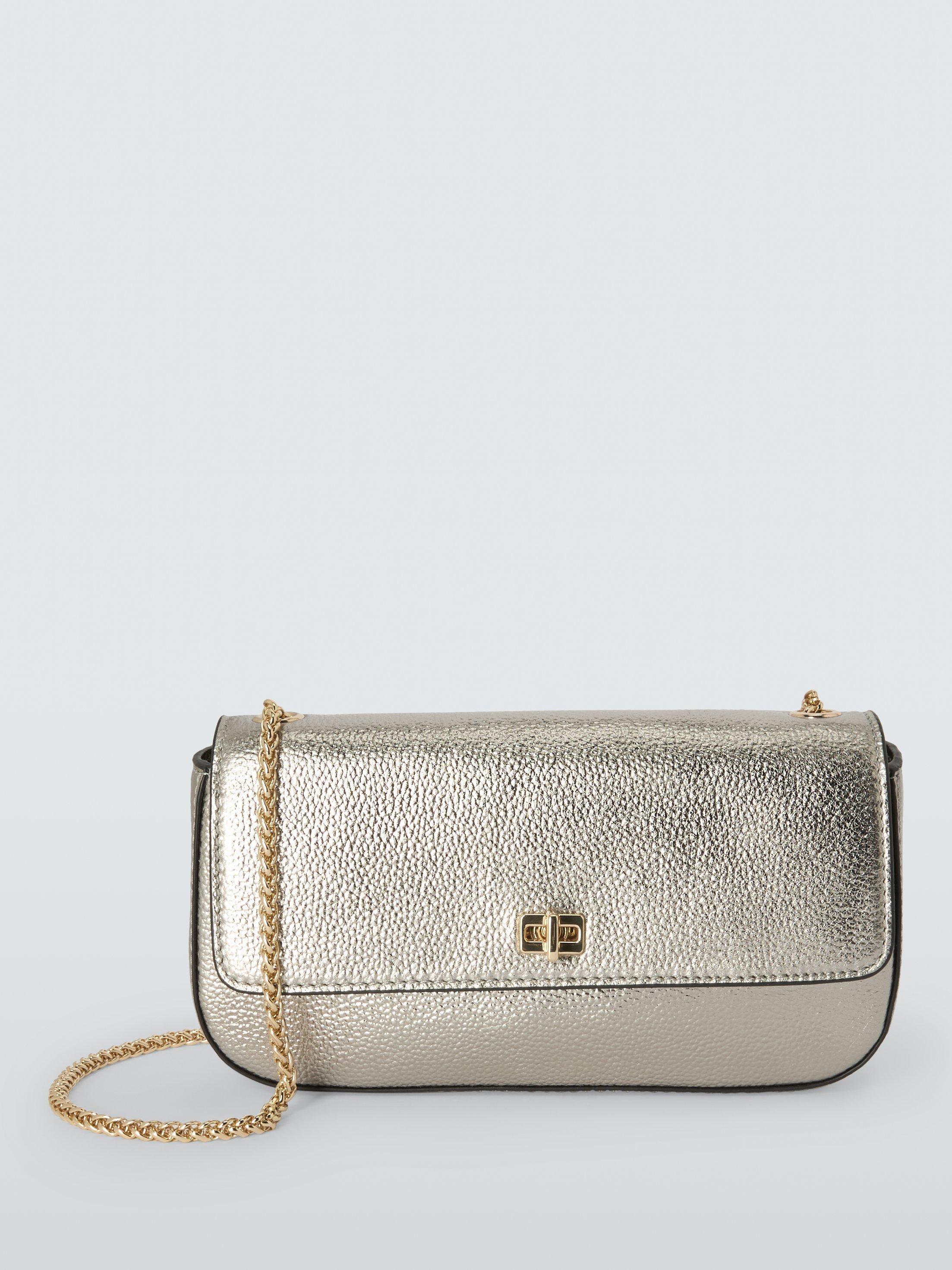 John Lewis Leather Chain Flapover Handbag Pewter Very well made.