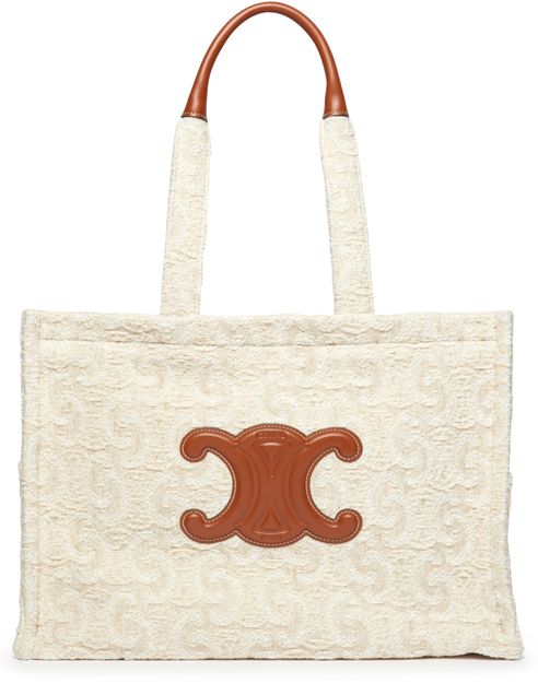Celine White Triomphe Print Textile and Calfskin Large Cabas Thais Very well made.