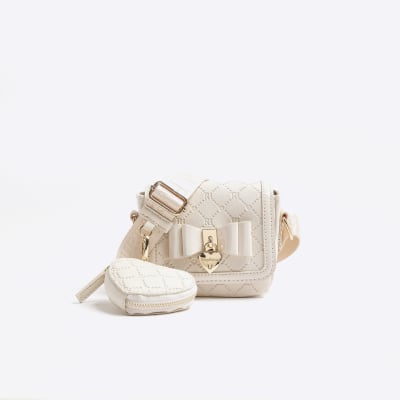 Girls Cream Faux Leather Bow Cross Body Bag River Island Very well made.