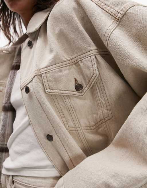 Topshop denim balloon jacket with check lining in ecru part of a set Very well made.