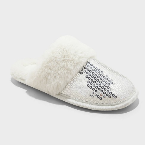 Women s Rae Sequin Scuff Slippers Auden Silver Xl Target Very well made.