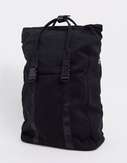 ASOS DESIGN canvas backpack with faux leather base in black Very well made.