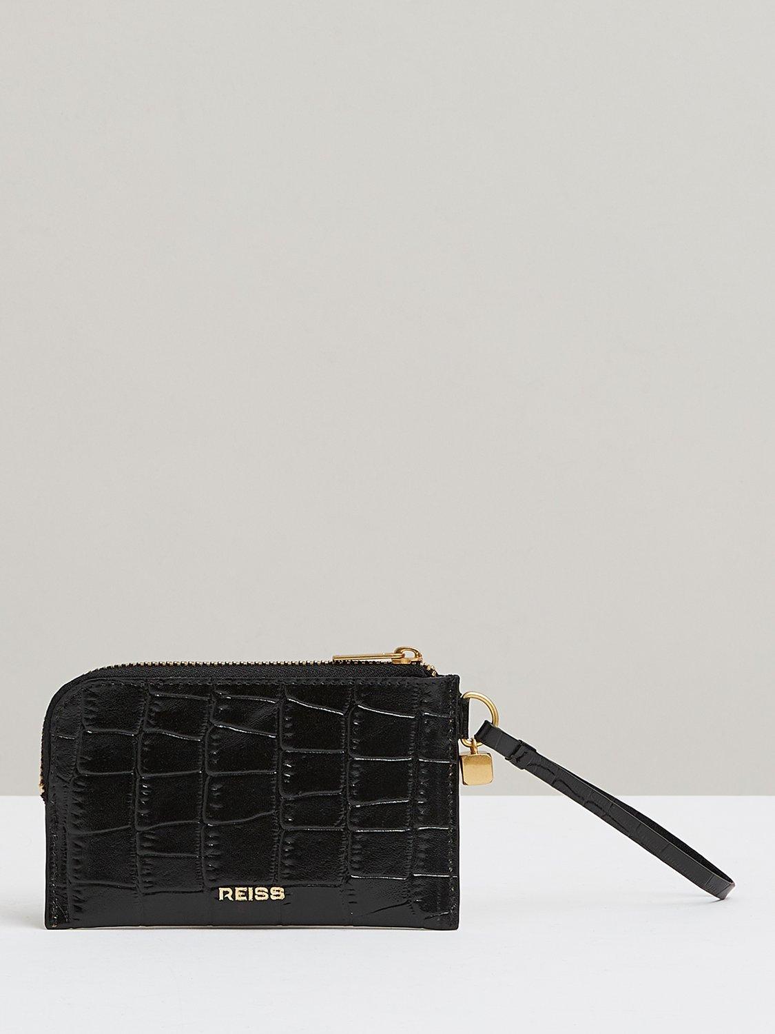Reiss Gloria Croc Effect Leather Zip Around Wristlet Purse Black Very well made.
