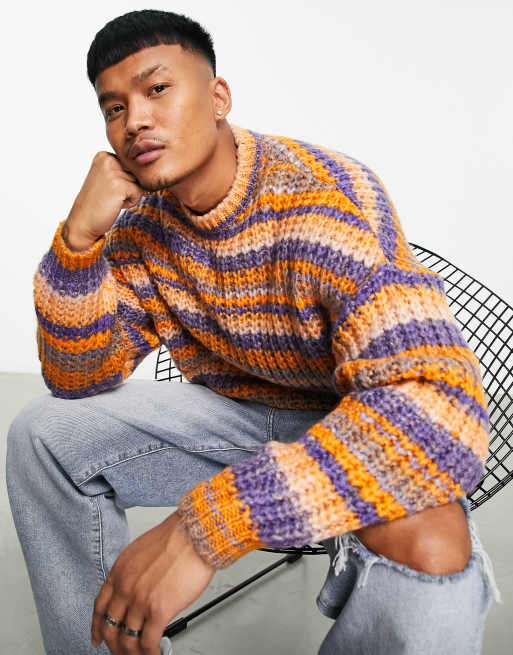 ASOS DESIGN chunky knit stripe jumper in multi space dye Very well made.
