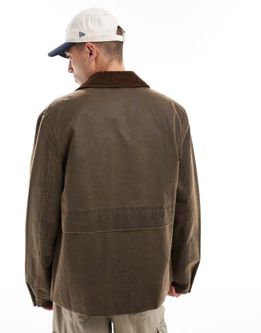 ASOS DESIGN oversized washed harrington jacket with corduroy collar in brown Very well made.