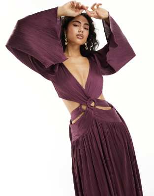 ASOS DESIGN satin plisse ring waist detail maxi dress with kimono sleeve in purple ASOS Very well made.