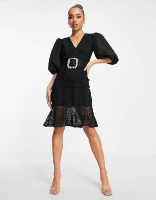 ASOS DESIGN puff sleeve wiggle lace midi dress with pocket detail in black ASOS Very well made.