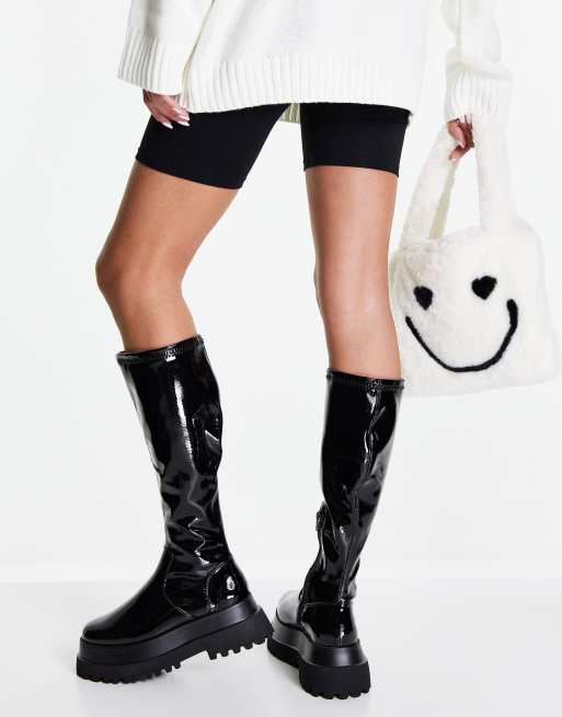 ASOS DESIGN Carlo chunky flat knee boots in black patent Very well made.