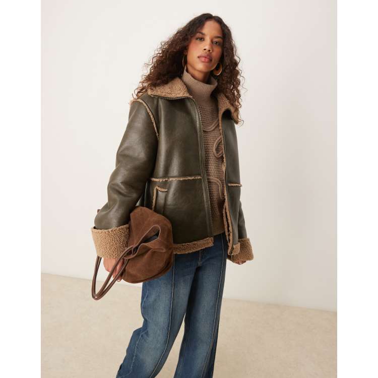 ASOS DESIGN fly borg collar aviator jacket in washed mocha ASOS Very well made.