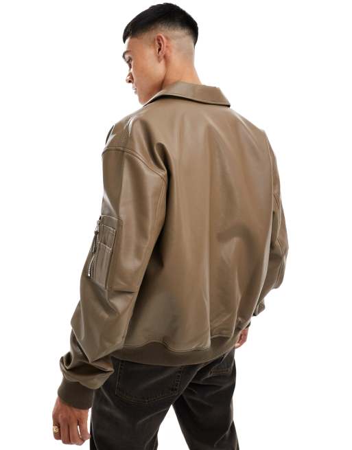 ASOS DESIGN oversized faux leather bomber jacket in brown ASOS Very well made.