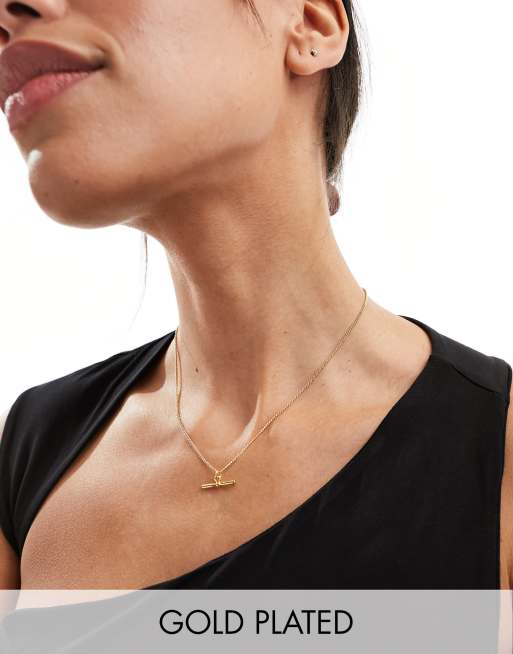 ASOS DESIGN 14k gold plated chain necklace with tbar detail ASOS Very well made.
