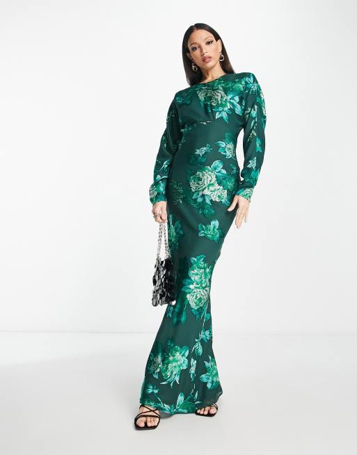 ASOS DESIGN cold shoulder maxi dress in green floral print Very well made.
