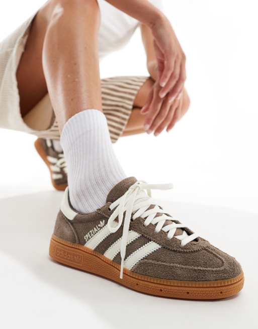 adidas Originals Handball Spezial gum sole sneakers in brown and white Very well made.
