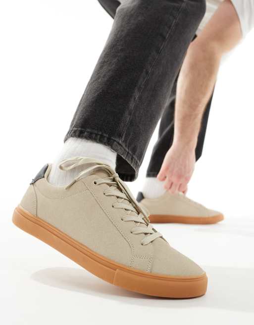 ASOS DESIGN beige suedette trainers with gum sole ASOS Very well made.