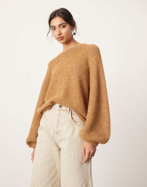 ASOS DESIGN oversized boxy fit heavyweight knitted wool mix cable sweater with collar in brown heather Very well made.