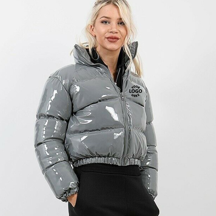 Wholesale 2022 ladies crop vinyl short bubble coat clothes custom winter shiny cropped puffer jacket for women BestSuppliers Very well made.