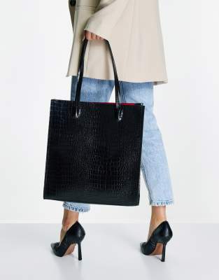 ASOS DESIGN laptop compartment tote bag in black croc Very well made.