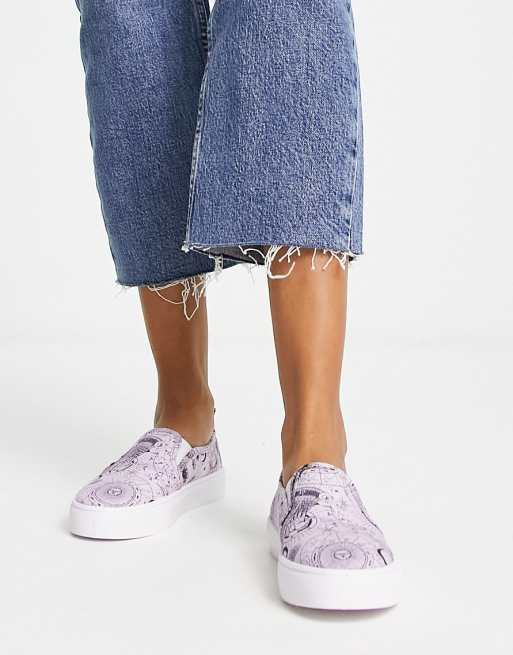 ASOS DESIGN Dotty slip on canvas shoes in lilac celestial print ASOS Very well made.