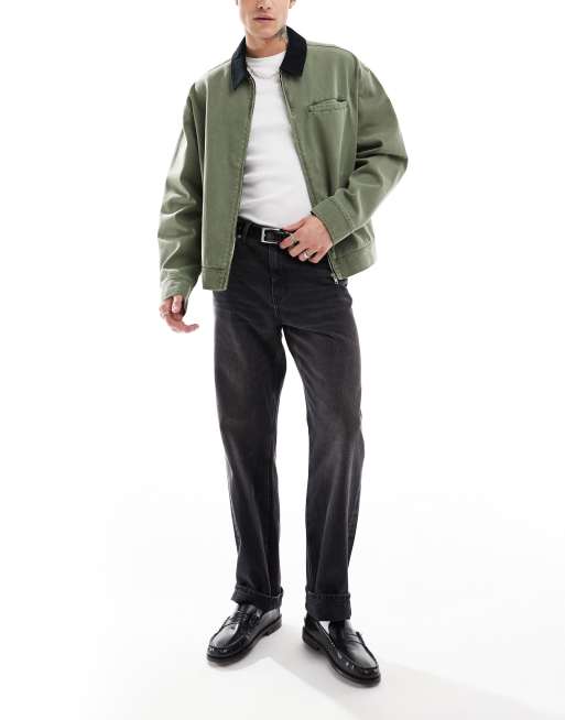 ASOS DESIGN oversized washed harrington jacket with cord collar in khaki ASOS Very well made.