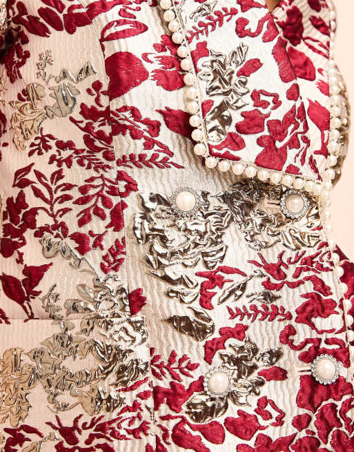 ASOS LUXE jacquard tailored blazer with pearl embellishment in burgundy gold floral print Very well made.