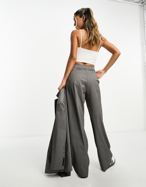 ASOS DESIGN wide leg pleated trouser in grey twill Very well made.