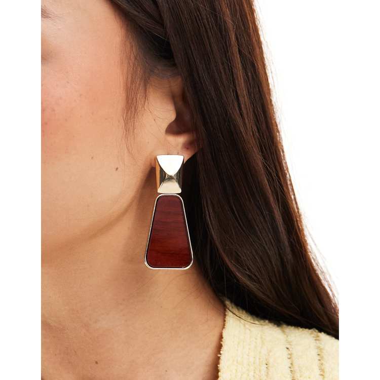 ASOS DESIGN drop earrings with rectangle natural look design in gold tone ASOS Very well made.