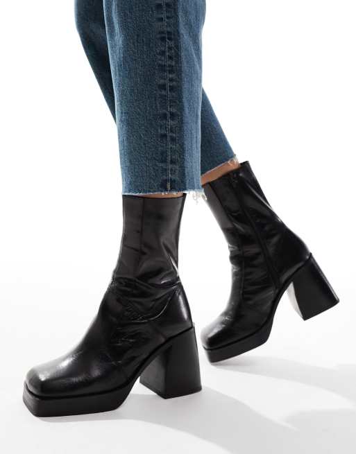 ASOS DESIGN Eclectic high heeled platform boots in black ASOS Sample Sale Very well made.