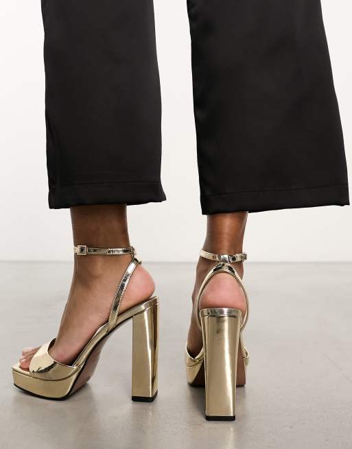 ASOS DESIGN Noun Sandali oro con tacco largo e plateau Very well made.