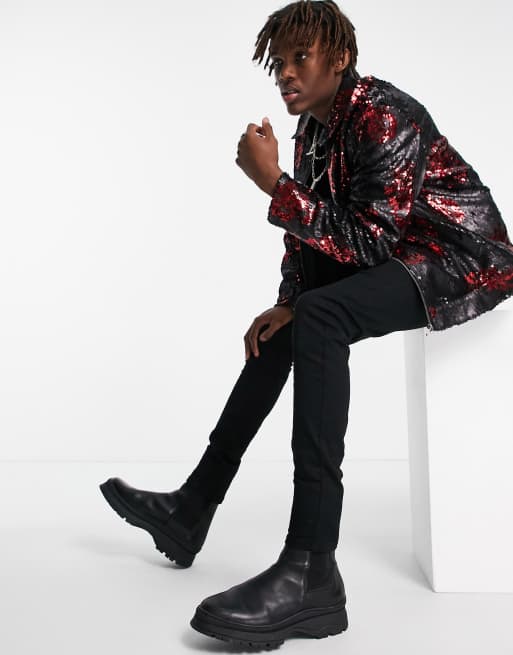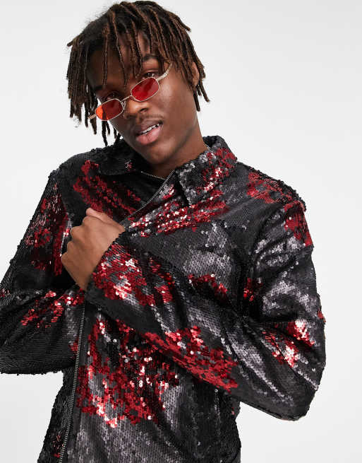 ASOS DESIGN harrington jacket in all over sequin detail Very well made.