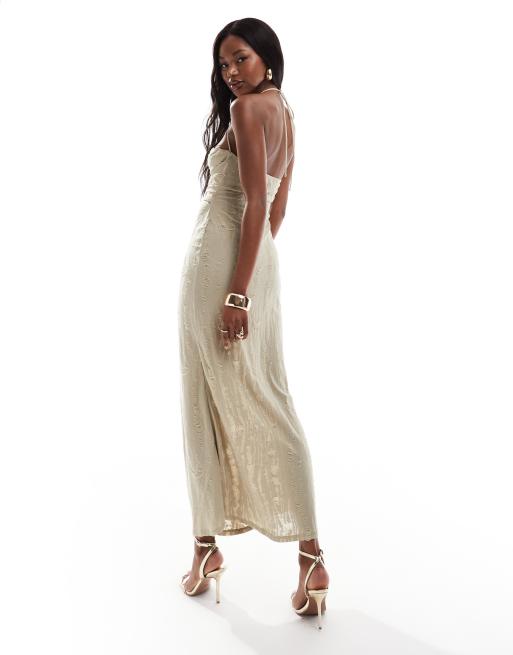 ASOS DESIGN textured cami midi dress with natural trim in brown Very well made.