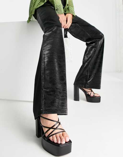 ASOS DESIGN Tall straight leg trouser in iridescent croc faux leather in black Very well made.