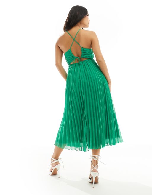 ASOS DESIGN Petite Vestito midi verde a pieghe con spalline sottili Very well made.