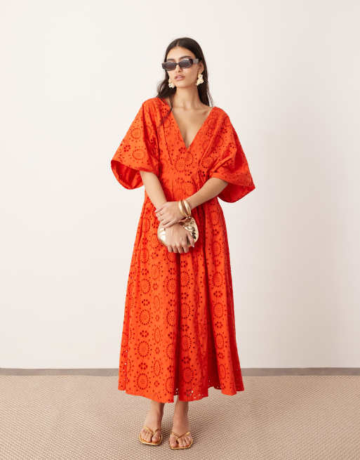 ASOS Edition Vestito midi in pizzo con maniche ampie e scollo profondo rosso ASOS Very well made.