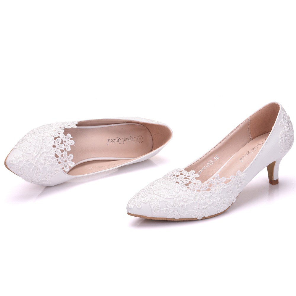 Elegant and simple lace flower wedding shoes white 5cm high heeled bride shoes Shopee Philippines Very well made.