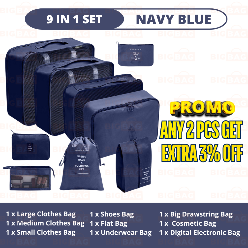 BIG BAG 9 In 1 Luggage Organizer Bag Travel Bag Organizer Luggage Bag Travel Kit Travel Pouch Packing Cube Shopee Malaysia Very well made.