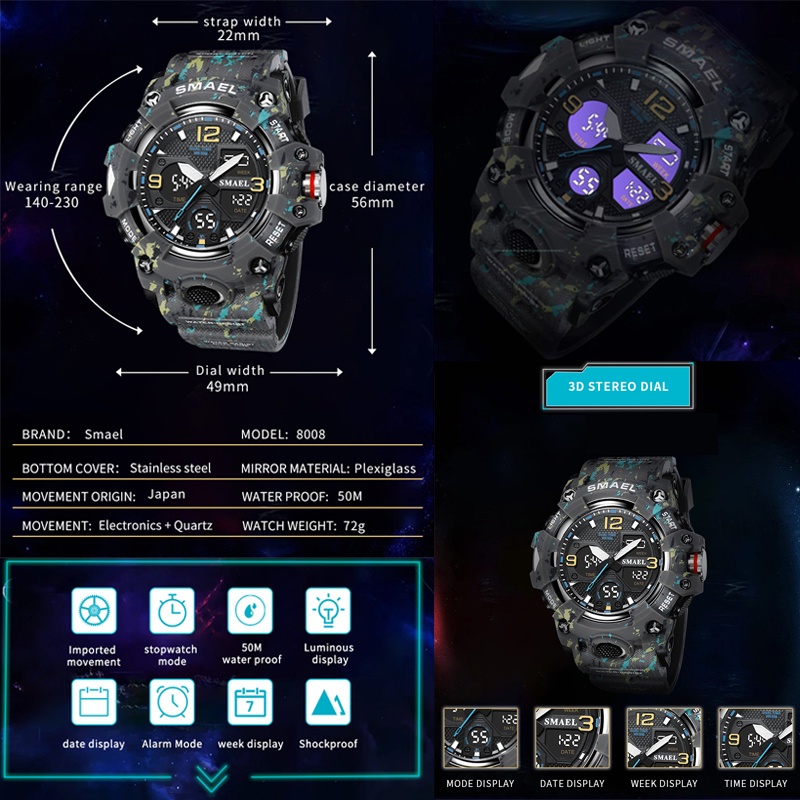 SMAEL Original Digital Men Watch Brand Fashion Waterproof Sport Casual Military Men s Watches Alarm Luminous 8008 Shopee Philippines Very well made.