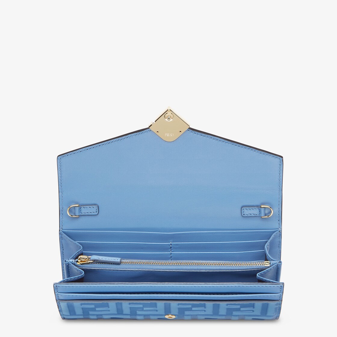 FF Diamonds Continental With Chain Leather Light blue Fendi Very well made.
