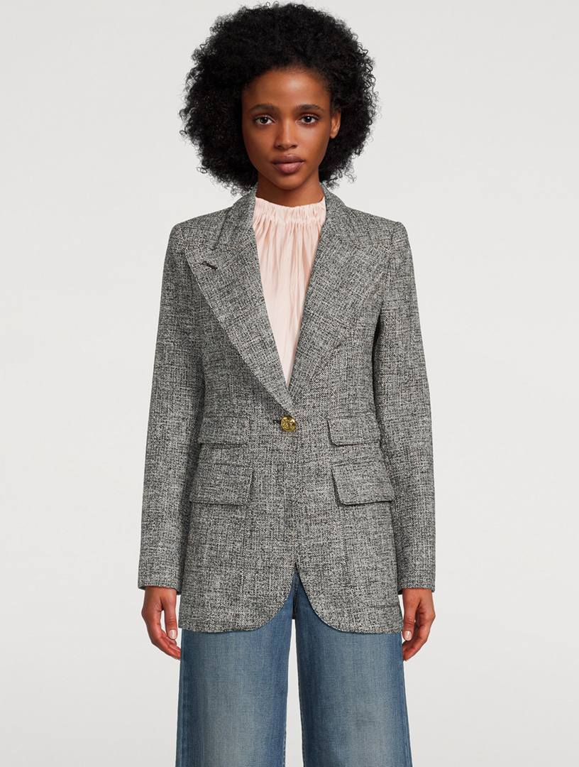 Birkin salt and pepper tweed blazer Smythe Shop Women s Designer Smythe Online in Canada Simons Very well made.