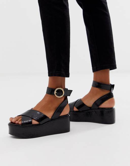 ASOS DESIGN Trella metallic snake flatforms in black ASOS Very well made.