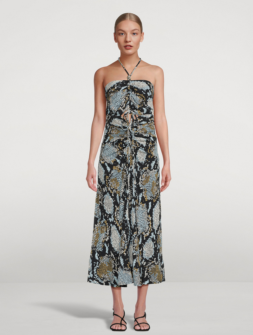 Pleated Snake Print Georgette Halter Dress Michael Kors Canada Very well made.
