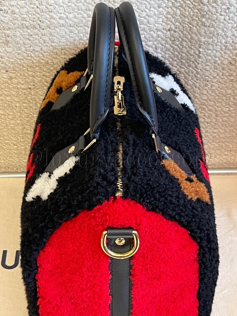 Louis Vuitton Limited Edition Black Multicolor Monogram Shearling Teddy Speedy Bandouliere 25 Fiyat Very well made.