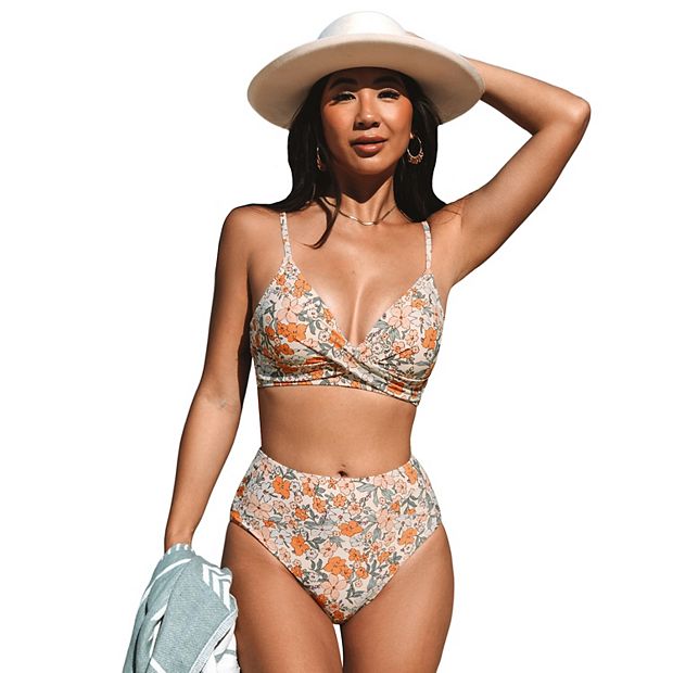 Women s CUPSHE Floral Twist Bralette Spliced High Waist Bikini Set Very well made.