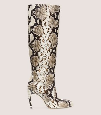 Stuart Weitzman 85mm Xcurve Python embossed Leather Knee High Boots in Grey Lyst UK Very well made.