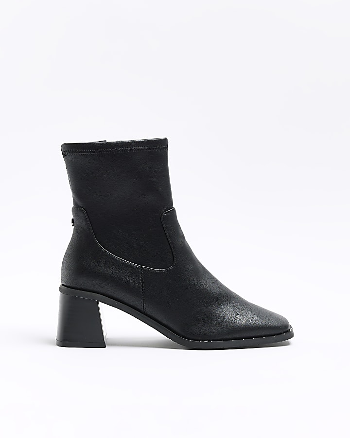 Black faux leather stud block heel boots River Island Very well made.