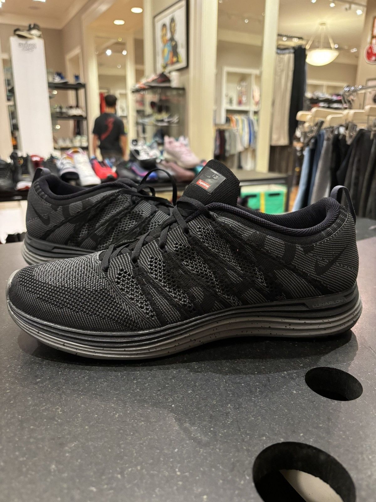 Size 10.0 Supreme x Flyknit Lunar1 Black Very well made.