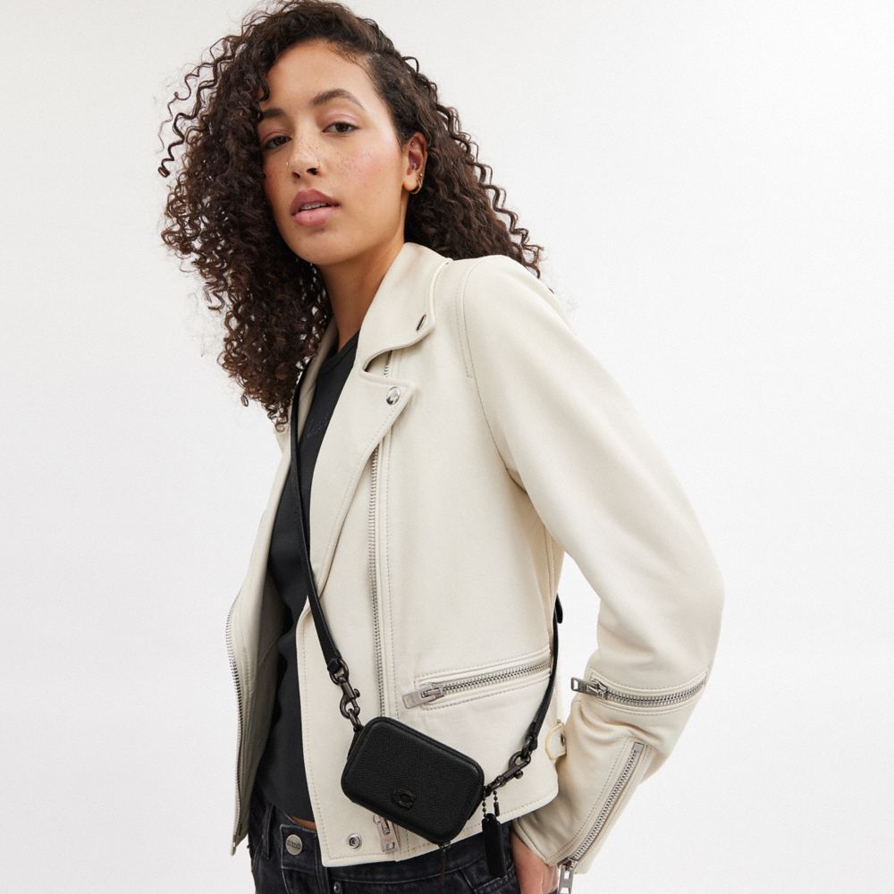 Coach CA069 Jamie Mini Black Pebbled Leather Camera Crossbody Handbag Very well made.