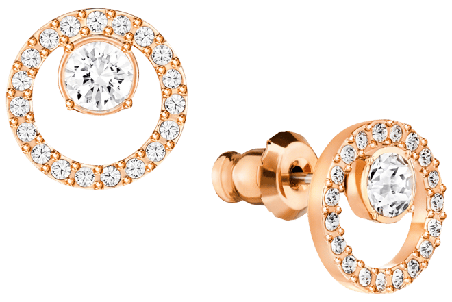 Swarovski Creativity Women s Small Circle Pierced Stud Earrings with White Crystals on a Rose Gold Tone Plated Post and Secure Back Closure Very well made.
