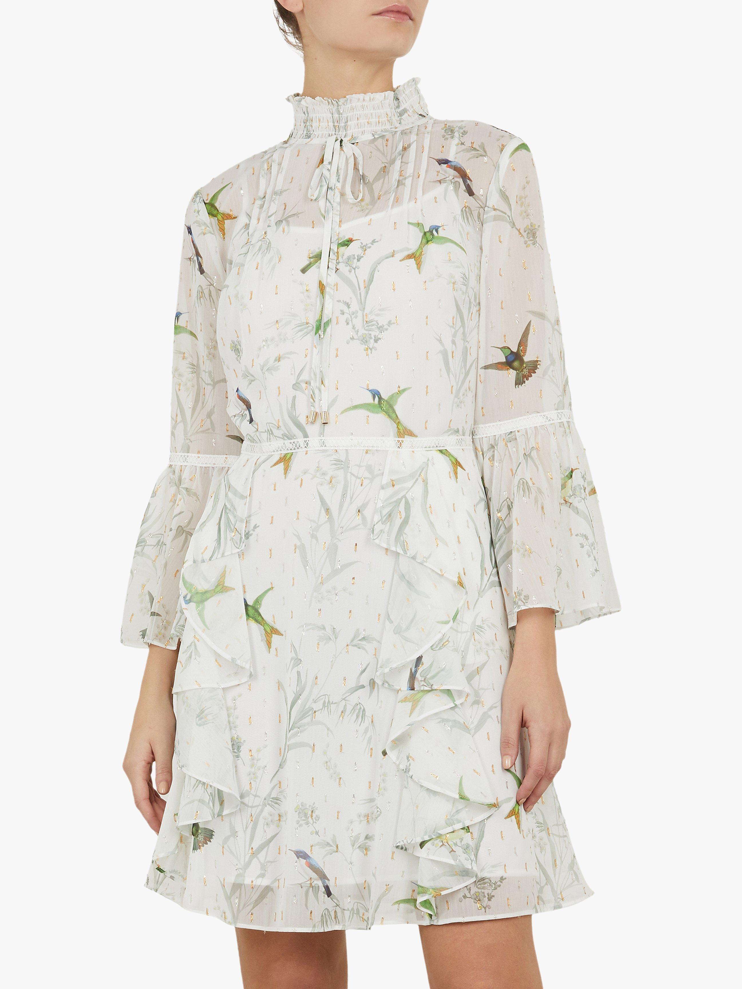 Ted Baker Andray Bird Print Ruffle Dress Mint Green Very well made.