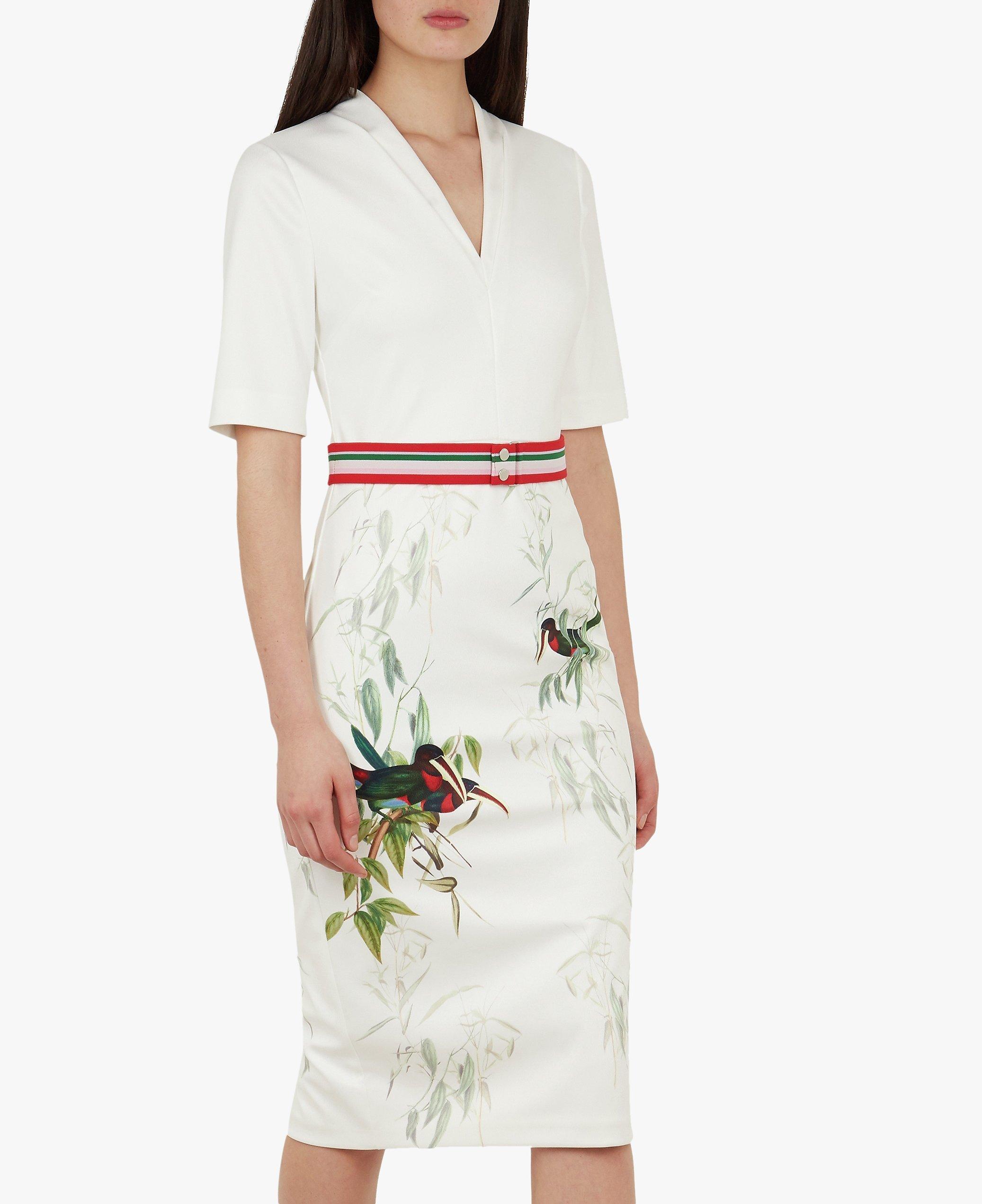 Ted Baker Molilo Bird Bodycon Dress White Very well made.