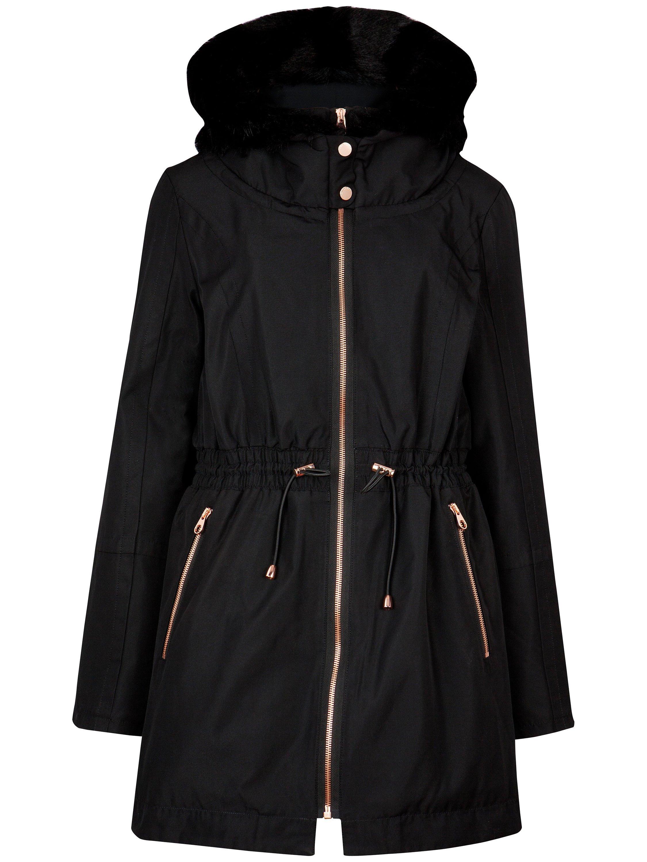 Ted Baker Ruye Faux Fur Trimmed Parka Coat Black Very well made.